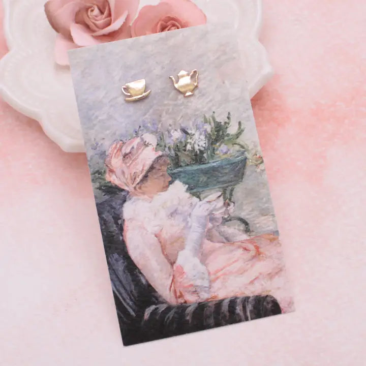 Stainless Steel Teapot Shaped Tea Strainer w/Flower Shaped Drip Tray