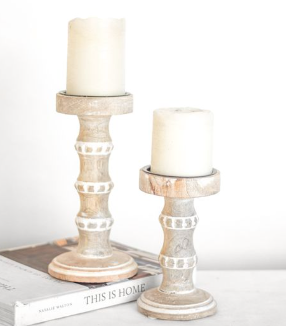 Wood Beaded Candle Holder (2 sizes)