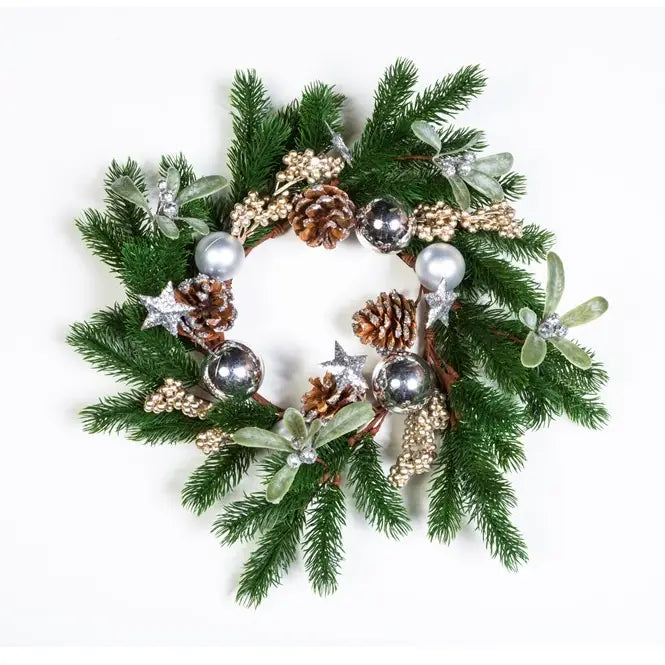 Pine Candle Ring with Glitter Stars, Cones, & Berries